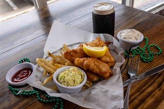 Entrees: Brisket Guinness Mac & Cheese Corned Beef & Cabbage Fish-N-Chips Shepherd's Pie Bangers & Mash Irish Seafood Biscuits & Gravy Oven Roasted Salmon Irish Fried Chicken
